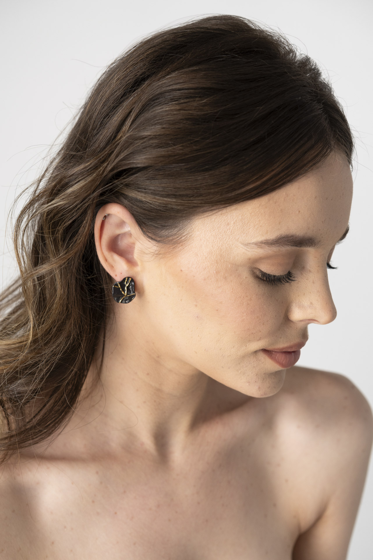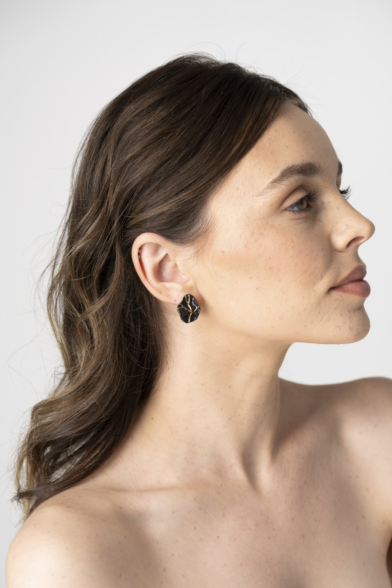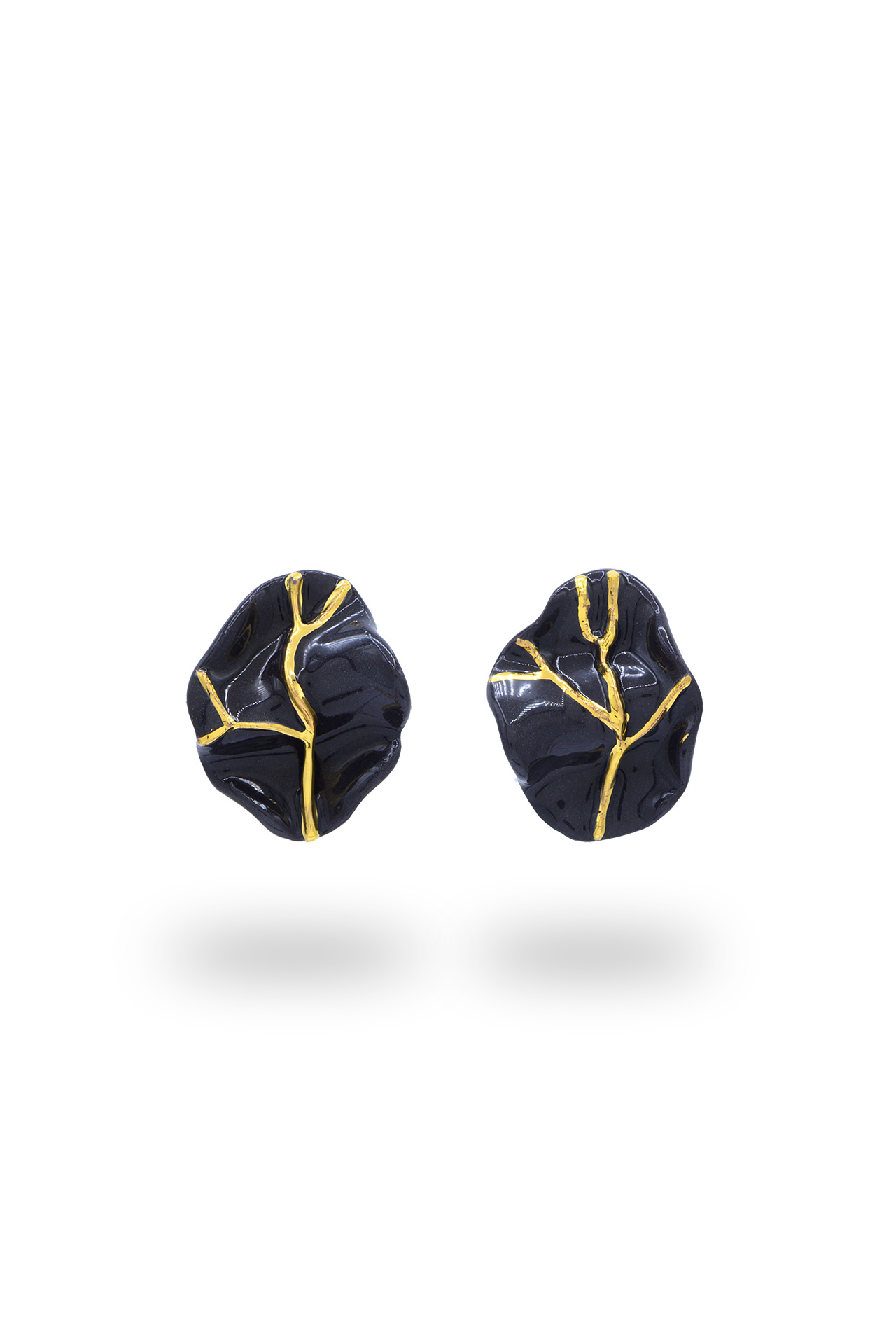 La collection Kintsugi est une méditation sur la beauté qui renaît de la fragilité. Inspirées par l’art japonais qui embrasse l’imperfection, les pièces prennent vie sous la main de l’artiste, façonnées et peintes à la main, puis sublimées par de l’or 24 carats. Chaque bijou porte en lui une histoire — celle de la guérison, de l’unicité et de la lumière qui pénètre les fissures pour les transformer en art.