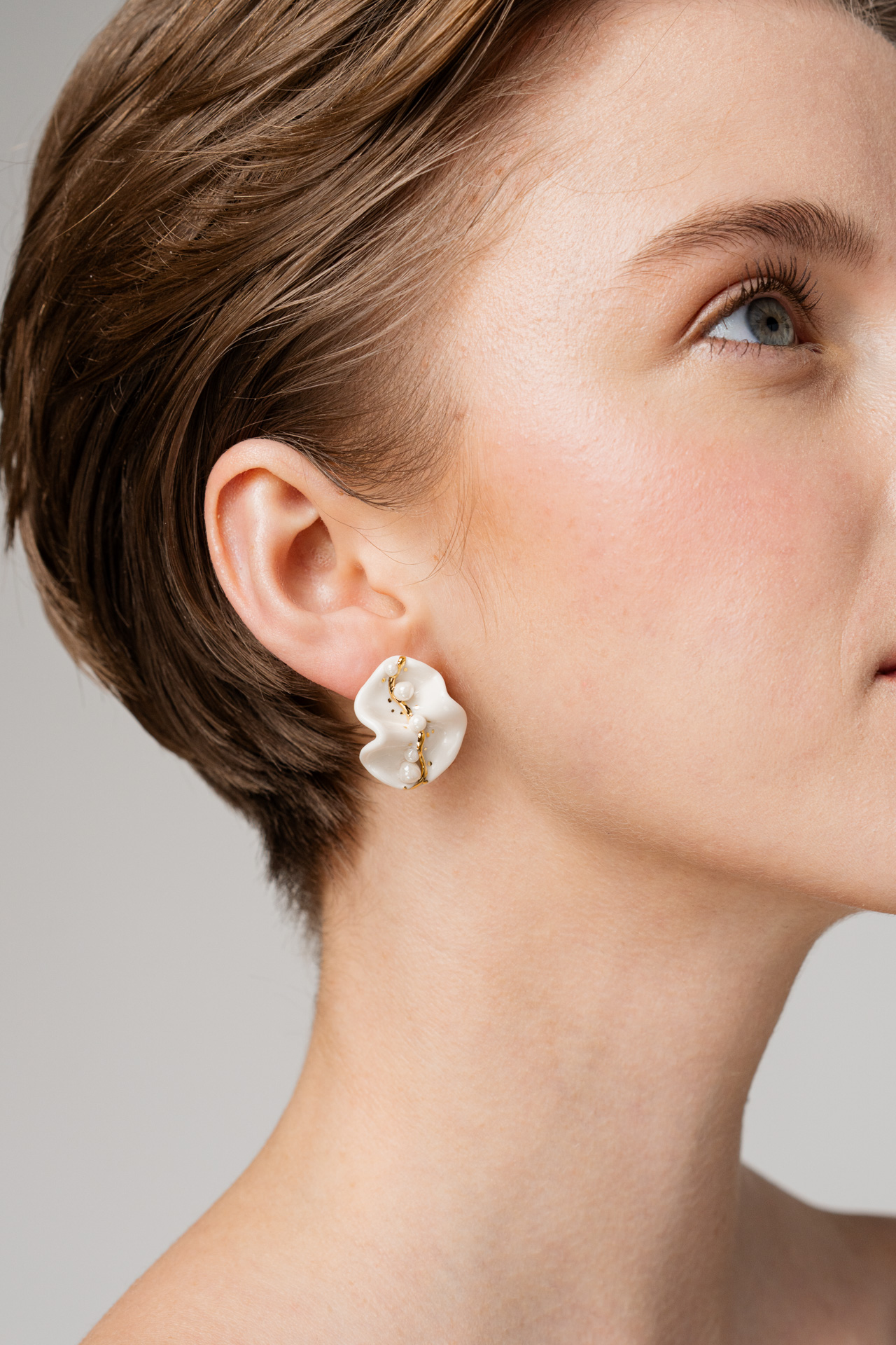 Chaque perle de la collection Pearl est entièrement créée dans notre atelier, façonnée à la main en porcelaine — non extraite ni achetée, mais née d’un geste, de la patience et d’une intention artistique. La porcelaine, à la fois délicate et résistante, prend la forme de la perle comme un symbole d’élégance intemporelle — une beauté discrète qui ne suit pas les tendances, mais les dépasse. Sa surface lumineuse et irisée reflète la lumière avec une subtilité presque vivante, rappelant l’intimité et le raffinement des bijoux transmis de génération en génération. La collection parle de grâce, de la force silencieuse de la féminité et de la valeur des choses créées avec sens, non dans la hâte. La collection Pearl n’est pas une imitation de la nature, mais une réinterprétation de celle-ci — une perle réinventée à travers l’art, la mémoire et le temps.