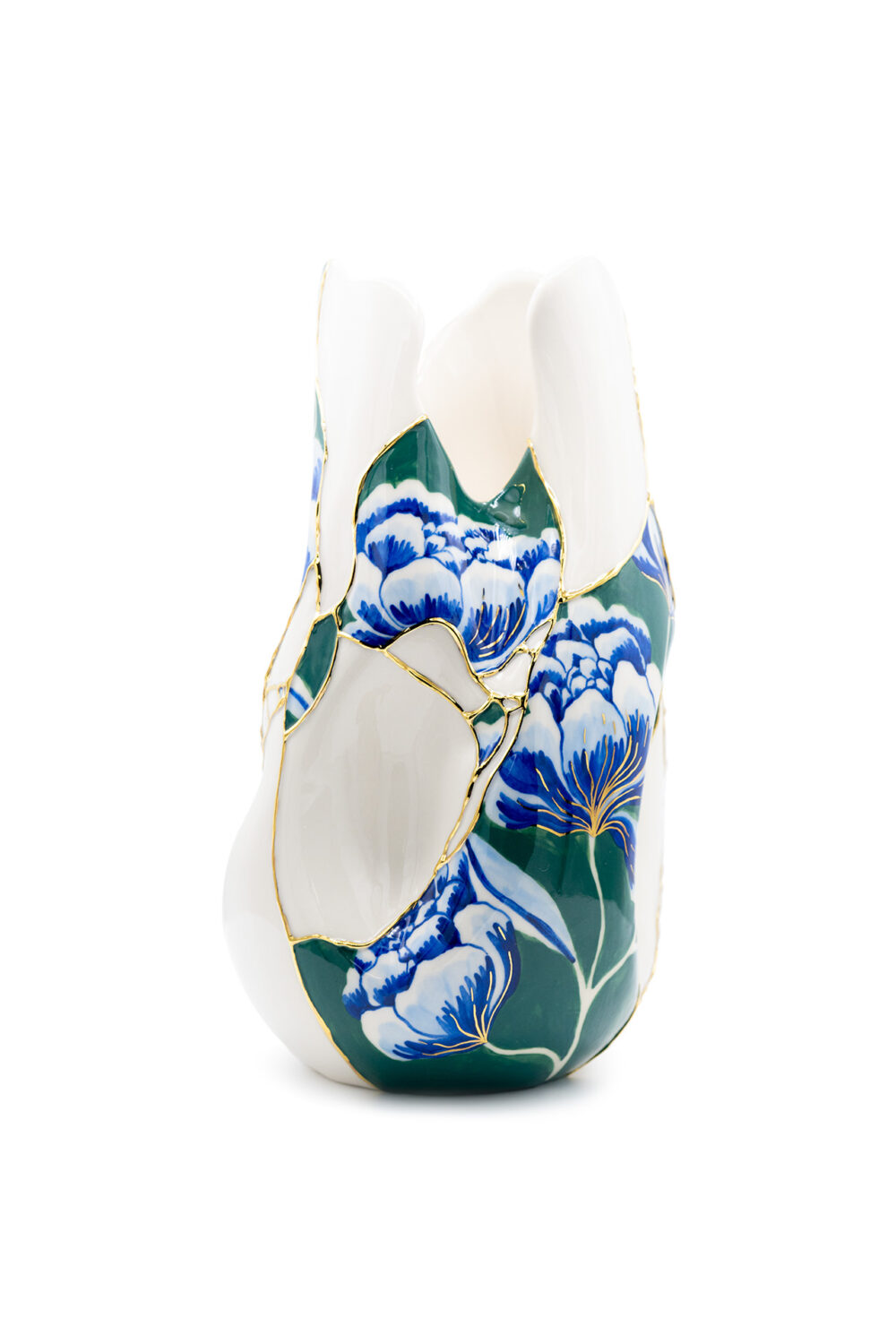 Chaque vase est une pièce unique en porcelaine, méticuleusement sculptée et peinte avec des détails en or. Les vases sont fabriqués en édition limitée et chacun est unique. La philosophie de la marque veut que les pièces soient créées par un artiste, qu’elles soient originales, aussi variées que possible et très soigneusement fabriquées, devenant ainsi des œuvres d’art au sens propre du terme.